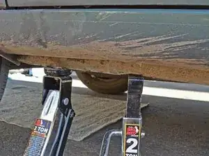 Полезно, но не обязательно, поднимать оба бока автомобиля. Поскольку сливная пробка находится со стороны пассажира относительно осевой линии, достаточно поднять только водительский бок для слива масла.