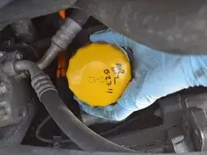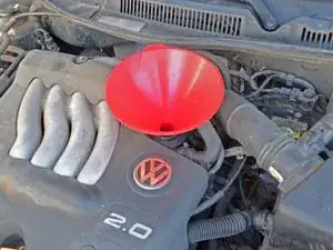 Залейте 4,5 литра (4,75 кварт) масла 5W-30 через воронку. Это всего 4,5 литра итого, помните, что вы уже добавили часть масла в масляный фильтр.