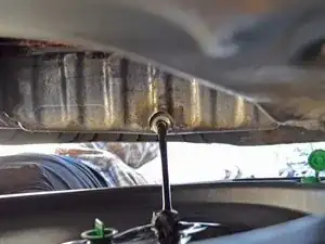Убедитесь, что ёмкость установлена так, чтобы поймать масло, когда оно польётся из поддона.