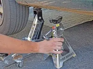 Используйте рукоять подставки для опоры, чтобы опустить её и вынуть из-под автомобиля.