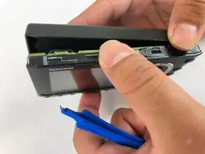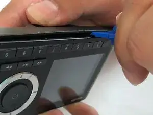Начинайте с нижнего левого угла, нажимая на пластиковый инструмент, чтобы отстегнуть защелки внутри устройства.