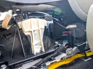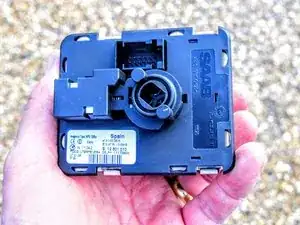 Переверните центральную консоль вниз и найдите модуль зажигания ISM. Его удерживают четыре пружинные защёлки. Сжмите каждую защёлку по очереди отвёрткой, одновременно выталкивая выключатель из разъёма.