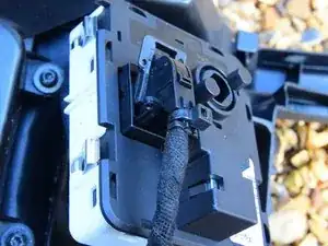 Выключатель подключён к кабелю через разъём. Найдите фиксатор крутящего момента и поверните его, чтобы освободить разъём.