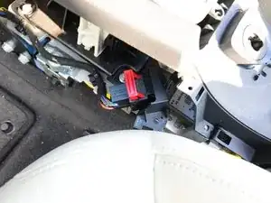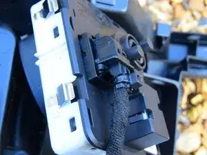 К центральной консоли от остальной части автомобиля подходят два жгута проводов. Один подключается через большой квадратный разъём с красной защёлкой.