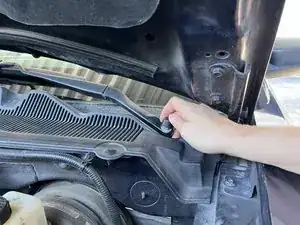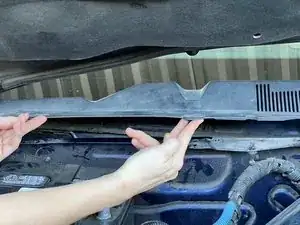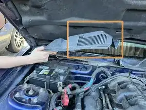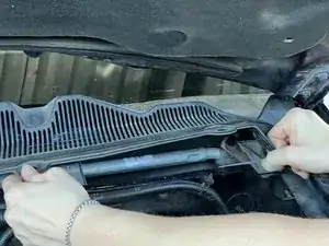 Чтобы полностью снять жабо, начните со стороны пассажира и поднимите его к капоту. Поднимайте ту сторону, которая отходит от средней стыковой линии жабо.