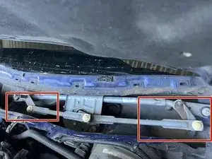 Используя головку на 13 мм, снимите болт, который находится под чёрной резиновой крышкой на обоих рычагах дворников.