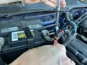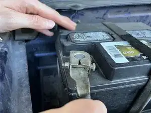 Используйте головку на 8 мм, чтобы ослабить болт на клемме аккумулятора.