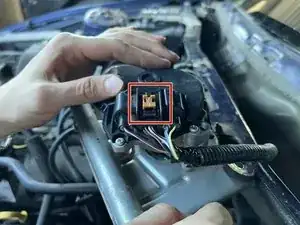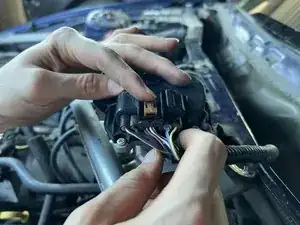 Нажмите на язычок электрического разъёма в направлении оголённых проводов и вы сможете снять разъём с мотора стеклоочистителя.