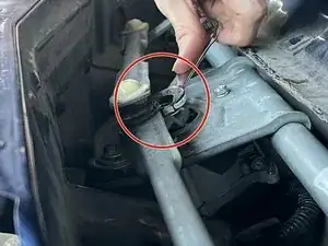 Двумя руками пошевелите рычаг и потяните вверх в направлении резьбы болта, чтобы снять его с автомобиля. Повторите на другой стороне.