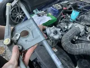 Снятие всех этих болтов освободит мотор стеклоочистителя от рамы. Положите узел на что-нибудь, чтобы он не упал на землю.