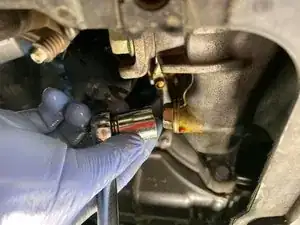 Открутите сливную пробку ключом на 17 мм и полностью слейте масло.