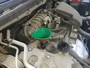 Медленно залейте 4.9 кварты масла SAE 5W-30 через воронку в отверстие заливной горловины.