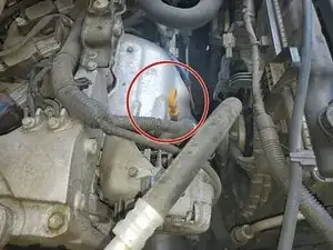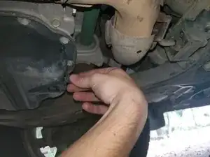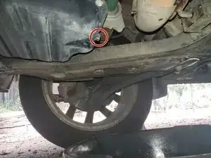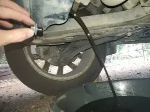 Разместите сливную ёмкость по центру под сливной пробкой масла.