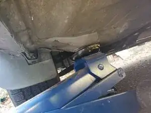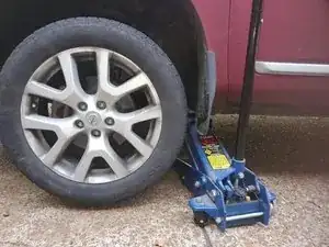 На ровной поверхности разместите домкрат за передним колесом со стороны водителя так, чтобы он поднимал автомобиль за металлическую раму.