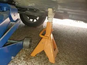 Поднимите автомобиль так, чтобы под ним было достаточно места для безопасного размещения подставки, затем установите подставку под автомобиль.