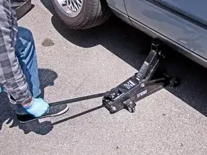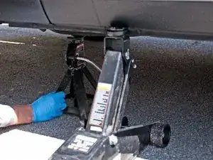 Используйте гидравлический домкрат (или штатный домкрат) чтобы поднять левую переднюю часть автомобиля.