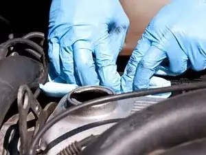 Подложите чистое бумажное полотенце под отверстие заливной горловины в клапанной крышке, чтобы поймать возможные капли масла.