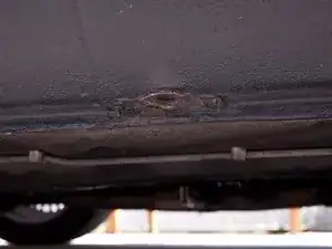 Найдите заводскую точку домкрачивания. На E30 она расположена прямо за передним крылом вдоль нижнего края порога.