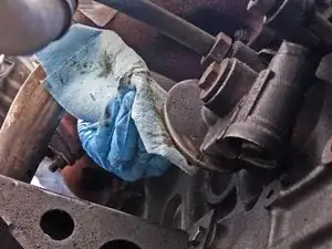 Если фильтр застрял, может понадобиться ременной съёмник для масляных фильтров. Его можно найти в большинстве магазинов автозапчастей. В крайнем случае можно забить плоскую отвертку через корпус фильтра для получения рычага (этот способ грязный).