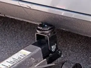 Убедитесь, что опорная площадка домкрата прочно стоит в точке домкрачивания при подъёме автомобиля. На моей площадке есть небольшая защёлка, которая входит в отверстие в середине точки домкрачивания, чтобы удерживать её на месте.