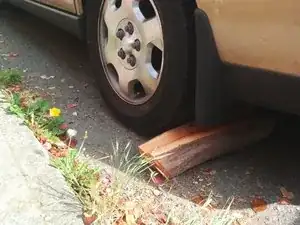 Позаботьтесь о том, чтобы автомобиль не покатился назад. Если он соскользнёт с домкрата или опор, это может причинить серьёзный вред автомобилю или Вам.