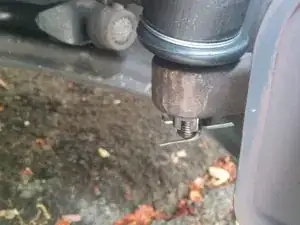 Теперь Вы видите наконечник рулевой тяги. Сзади у него стопорная гайка, удерживающая его на месте.