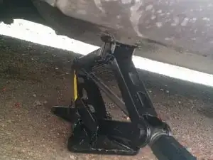 Установите домкрат в точку подъёма и медленно поднимите автомобиль.