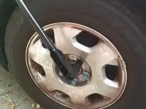 Ослабьте гайки крепления колеса. Не снимайте их полностью, просто сорвите момент. Это облегчит их откручивание, когда колесо будет подвешено.