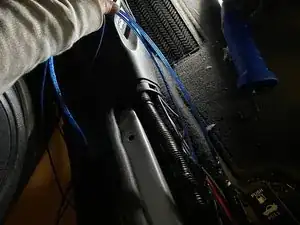 Протяните провода под задним сиденьем и вдоль порога со стороны водителя (снятого на шаге 1) к зоне под рулем.