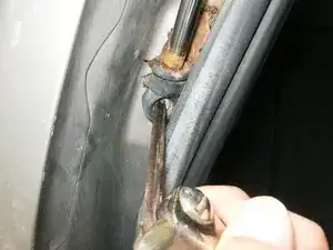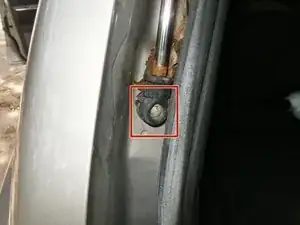 Полностью ослабьте болт, закрепляющий опору в верхней части задней двери с помощью ключа T40.