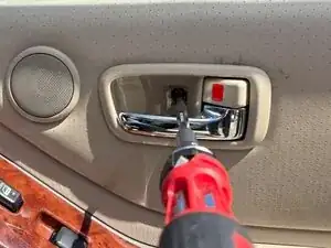 Проведите пластиковой отвёрткой вокруг кромки ручки двери и аккуратно подденьте облицовку, чтобы открыть доступ к винту.