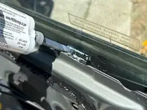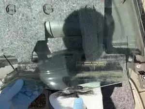 Удерживайте стекло на месте. Используйте панель кнопок окна со стороны водителя, чтобы опустить раму окна для повторного доступа к креплениям регулятора стекла.