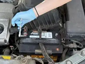 Используйте ключ-головку на 10, чтобы ослабить болт на 10 мм, крепящий отрицательный (чёрный) провод.