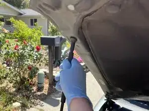 Осторожно отпустите капот, убедившись, что опорный стержень надёжно зафиксирован.