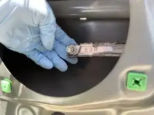 Используйте ключ с головкой 10 мм, чтобы открутить и снять старые крепления регулятора стекла.