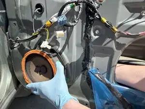 Залезьте внутрь дверной рамы и протолкните динамик сзади, чтобы снять сборку динамика.