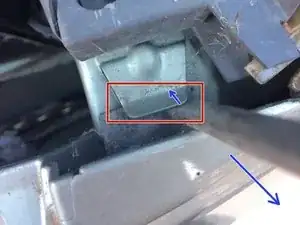 Воспользуйтесь большой отвёрткой или небольшой железной планкой, слегка подденьте элемент, как показано, пока он не отсоединится.