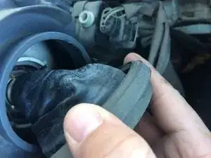 Снимите резиновый пыльник с задней части лампы дальнего света.