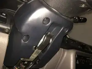Вариант 1: С регулируемым по высоте рулевым колесом: снимите винт, удерживающий верхнюю облицовку колонки руля, и опустите колонку до самого низа, освободив рычаг. Снимите верхнюю облицовку колонки руля.