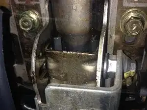 Вариант 2: Без регулируемой по высоте колонки руля: снимите все 4 винта облицовки колонки руля. Затем: снимите большие золотые винты. Будьте осторожны при снятии последнего: держите колонку крепко одной рукой, иначе она упадет, так как больше нигде не закреплена.