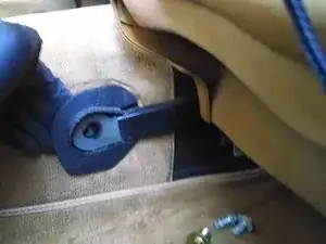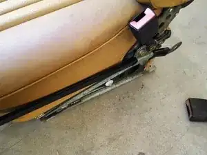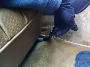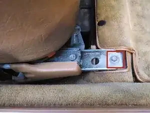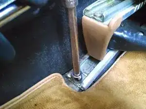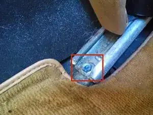Далее вернитесь за сиденье и найдите рельс сиденья в месте его крепления к приподнятому тоннелю между задними подножками.