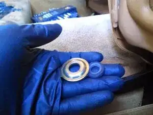 За торцом рельса вы обнаружите большую вогнутую шайбу и меньшую резиновую уплотнительную шайбу (отверстие, через которое проходит болт, выходит наружу). Обратите внимание на их расположение для обратной установки.