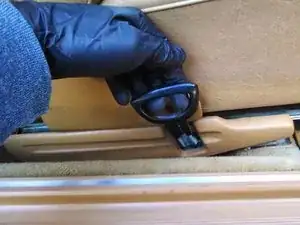 Теперь вы сможете снять пластиковую облицовку за торцом рельса сиденья.