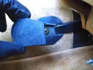 Снимите крышку, скрывающую болт, удерживающий рельс сиденья. Крышка может сниматься вручную или потребовать небольшого поддевания.