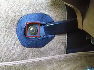 Заметьте, что при повторной установке защелки ремня безопасности болт следует зафиксировать каплей синего фиксажа резьбы, чтобы он не открутился.