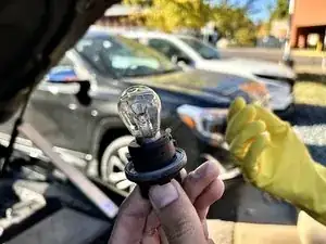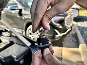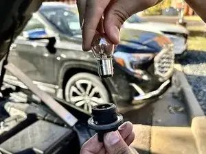 Нажмите на старую лампу указателя поворота и поверните её против часовой стрелки, чтобы снять с цоколя.