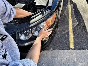 В этом руководстве показано, как заменить переднюю лампу указателя поворота в Hyundai Santa Fe 2012 года. Техническое обслуживание — важная часть владения и эксплуатации автомобиля, а указатели поворота являются неотъемлемой частью безопасного вождения. К счастью, их довольно просто заменить самостоятельно при минимальном наборе инструментов и материалов. Вам понадобятся: пассатижи с регулируемым захватом, одноразовые перчатки из латекса (или аналогичного материала) и что‑нибудь для подперевания капота (в данном случае использовали узкую дощечку). Материал: прозрачная лампа указателя поворота мощностью 27 Вт.