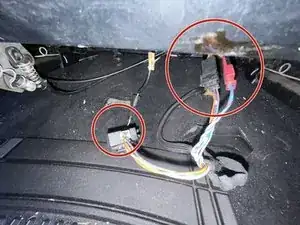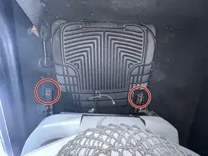 Подключите два электрических разъёма под задней частью сиденья.