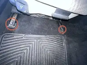 Установите сиденье водителя обратно и совместите шпильки спереди с передними отверстиями направляющих. Свободно установите две передние гайки и два задних болта.