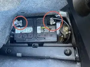 Подключите и затяните 13‑мм гайки на клеммах аккумулятора в багажнике.